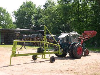 Die Hydraulikpumpe, für die zwei Nebeneinander liegenden Hydraulikzylinder, wird über die Zapfwelle der Zugmaschine angetrieben. Es können Holzstämme bis zu einer länge von 2mtr. gespalten werden. Falls sie noch Fragen haben, setzen Sie sich mit uns in Verbindung.